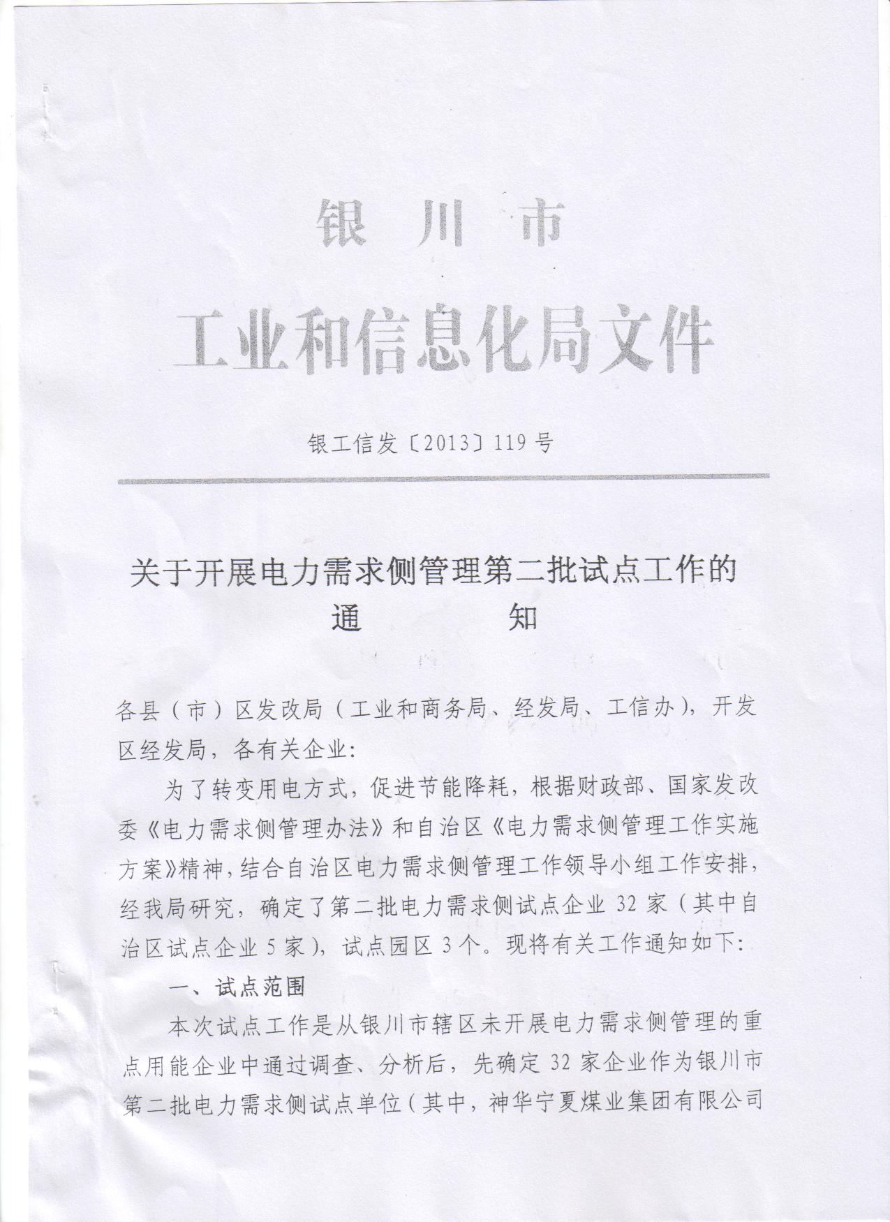關(guān)于開展銀川市電力需求側(cè)管理第二批試點(diǎn)工作的通知 |